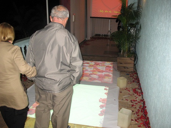 Cada casal era recebido com um coração que continha a foto e o nome do mesmo. Além da tecnologia de RFID, o tapete interativo (que reconhecia os movimentos do corpo e interagia com os clientes). Encantou a todos, tornando o jantar realmente inesquecível.